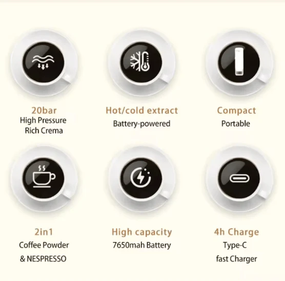 This portable electric espresso coffee maker is perfect for coffee lovers who want fresh espresso anywhere. Designed for travel, office, camping, and home use, it supports both Nespresso-style capsules and ground coffee. With powerful pressure, fast heating, and USB Type-C charging, it delivers café-style coffee on the go.
